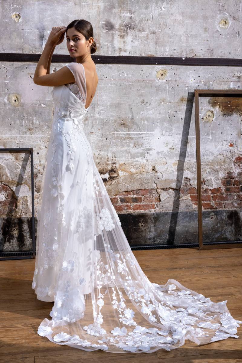 Laissez la combinaison Toscane de CYMBELINE éveiller les émotions de la grâce et du romantisme parmi vos invités. Cette tenue n'est pas simplement une robe de mariée, mais une promesse d'un moment magique où chaque détail évoque beauté et sophistication.