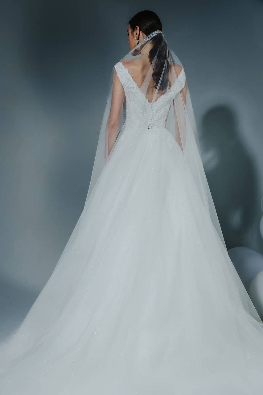 En choisissant la robe de mariée princesse Venise en tulle pailleté, dentelle et pierreries de CYMBELINE, vous entrez dans une dimension où l’héritage rencontre l'élégance moderne. Chaque pas, chaque mouvement dans cette robe est une déclaration d'amour et de raffinement.