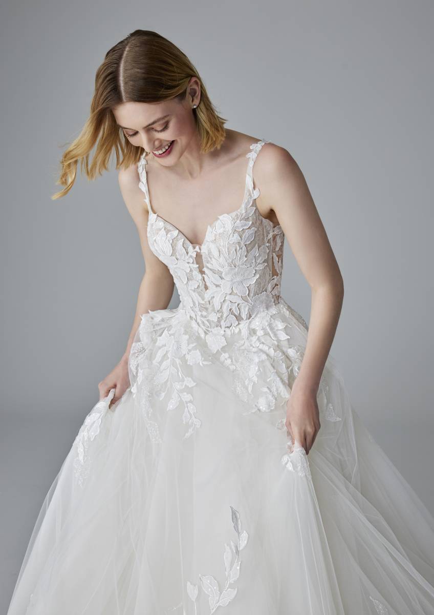 Dans une atmosphère empreinte de rêve et de raffinement, émerge KAMERIE, robe de mariée qui invite à l’émerveillement. Chaque détail minutieux exalte la beauté aérienne de la coupe princesse, magnifiée par une dentelle exquise. Entrez dans le jardin secret de KAMERIE qui s’anime au gré de la marche.