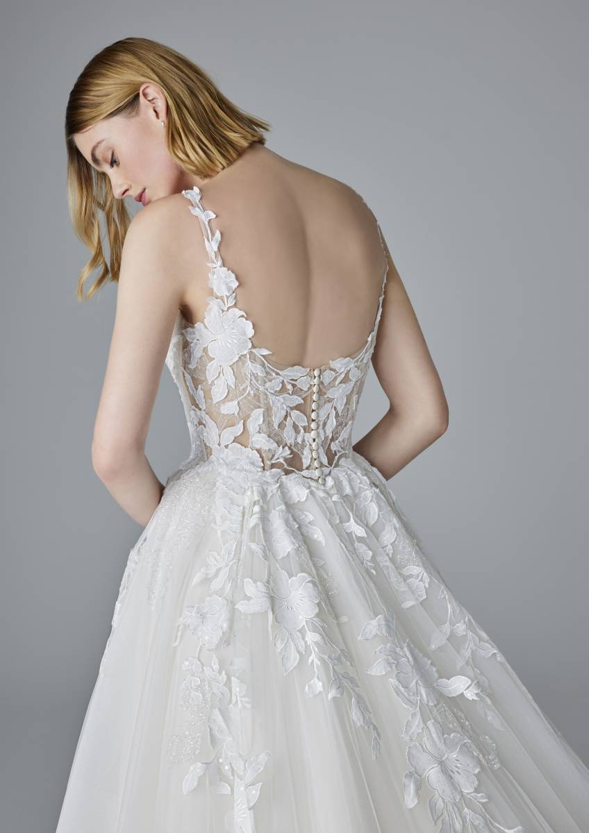 La robe de mariée princesse KAMERIE est un chant à la beauté, une ode à la grâce. Elle est l'expression d'un amour unique, d'une promesse d’éternité que l'on entend chuchoter dans le vent.